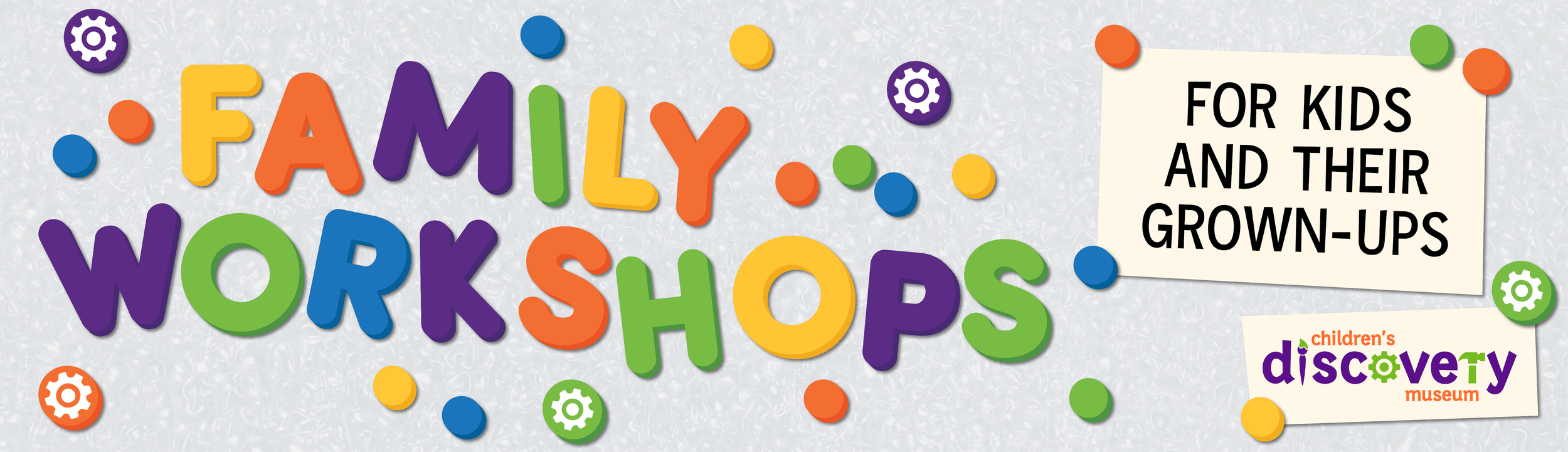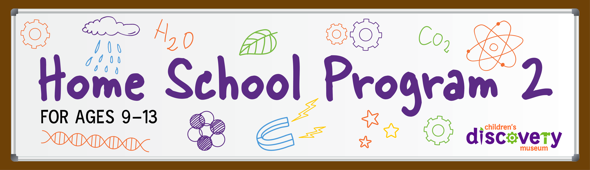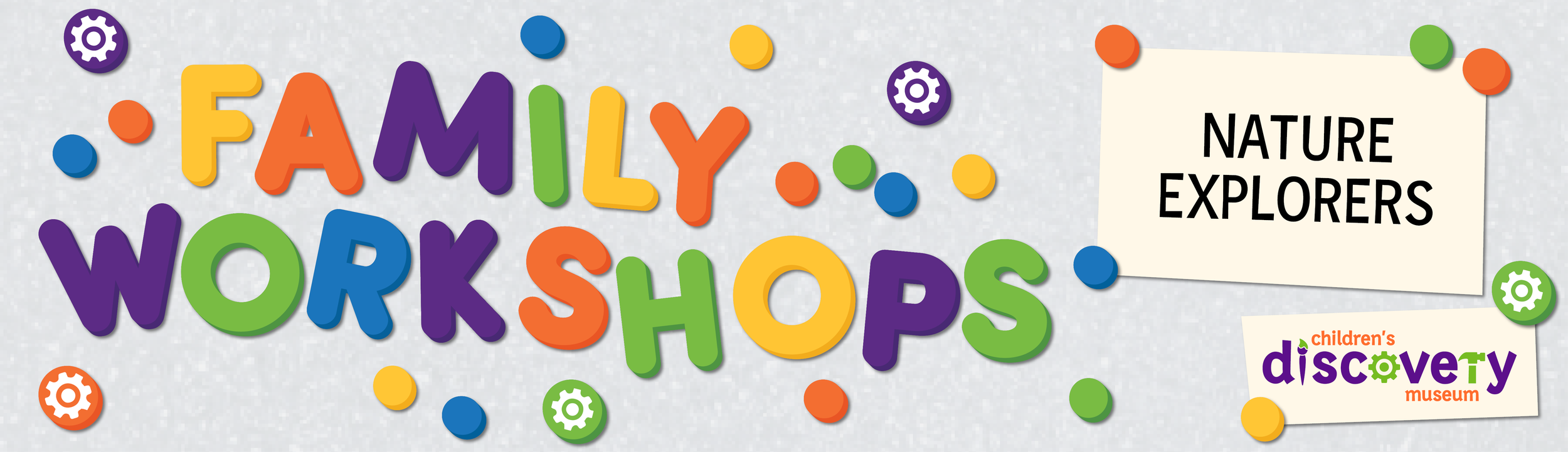 I was asked to create a unique, but overall cohesive, look and feel for each program hosted by the Children's Discovery Museum. Each program needed a 'set' web banner, an editable flyer, and a horizontal and vertical monitor slide. Each style utilized the museum's color palette, and many incorporated a variation of the gear icon featured in the museum logo. To be editable after my internship ended and I left, each style had a designated icon/graphic set, or a basic style that allowed for other assets or icons to be created/found.